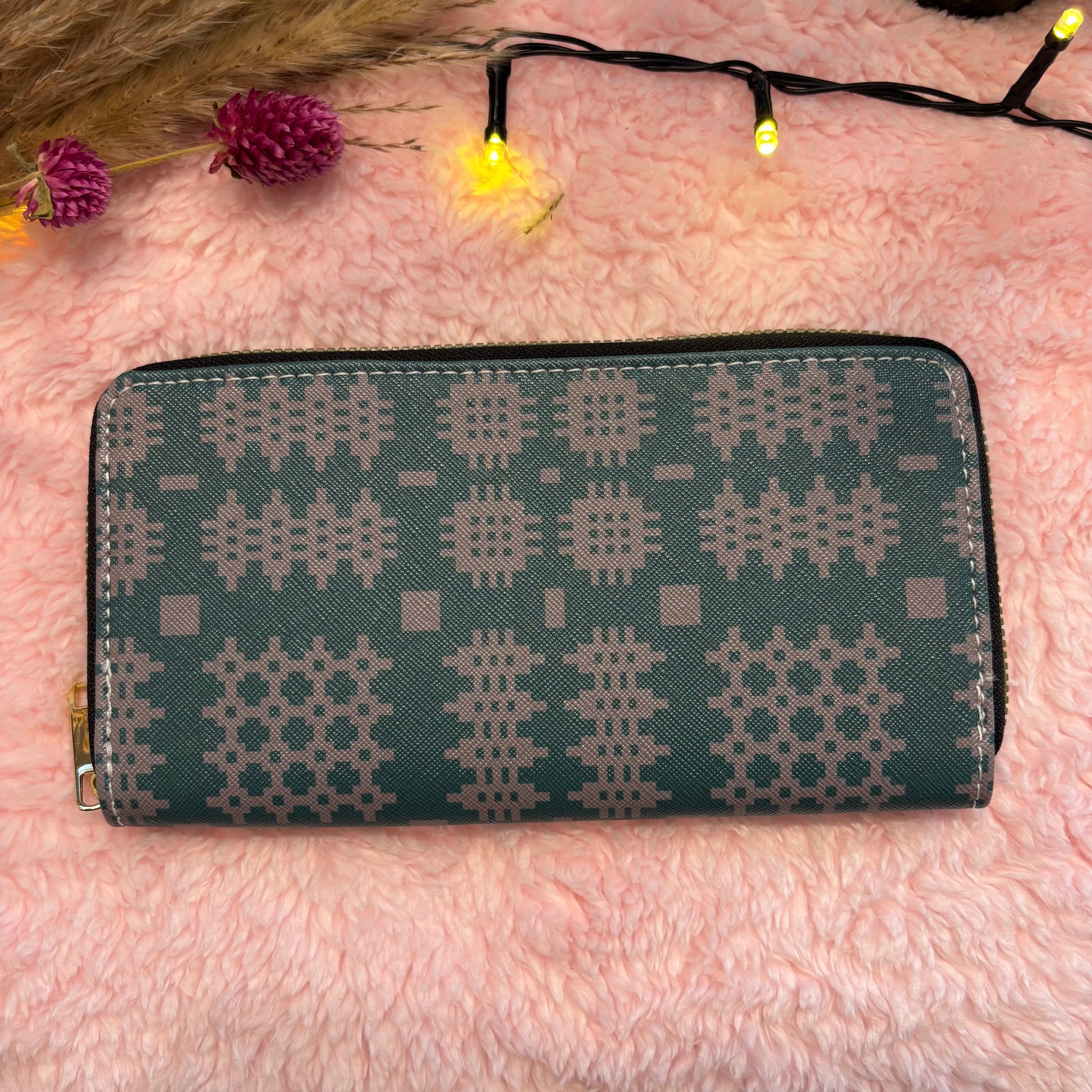 Teal Welsh Tapestry Blanket Design Print PU Purse